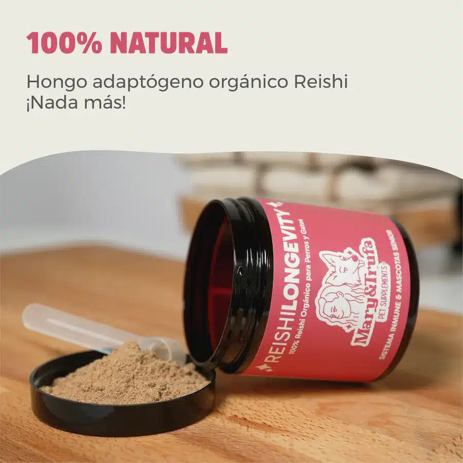 Reishi Longevity es un suplemento 100% natural para perros y gatos, perfecto para el sistema inmune y especialmente indicado para mejorar la calidad de vida de perros y gatos senior.